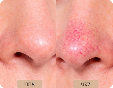 לאחר הטיפול, כלי הדם נסגרים בהדרגה ונעלמים, תוך שיפור במראה העור והפחתת אדמומיות. הטיפול מתאים למגוון עומקים וגדלים של כלי דם, ומאפשר תוצאות אחידות ומדויקות.